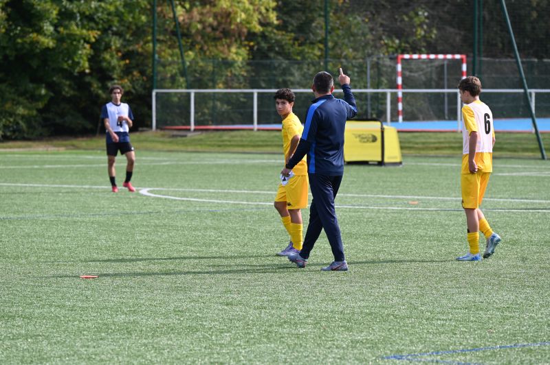 Il y a eu trois parties dans ce rassemblement : un échauffement, suivi d’un jeu qui consistait à travailler la sortie de balle en réduisant le nombre d’interceptions, puis une opposition sur trois temps de 10 minutes, au cours de laquelle on a demandé aux garçons d’être attentifs sur ce qui avait été travaillé lors du jeu précédent. A noter également que nous avions six gardiens de but, qui ont bénéficié d’un entraînement spécifique avec un entraîneur spécialiste du poste sur la première partie de séance.