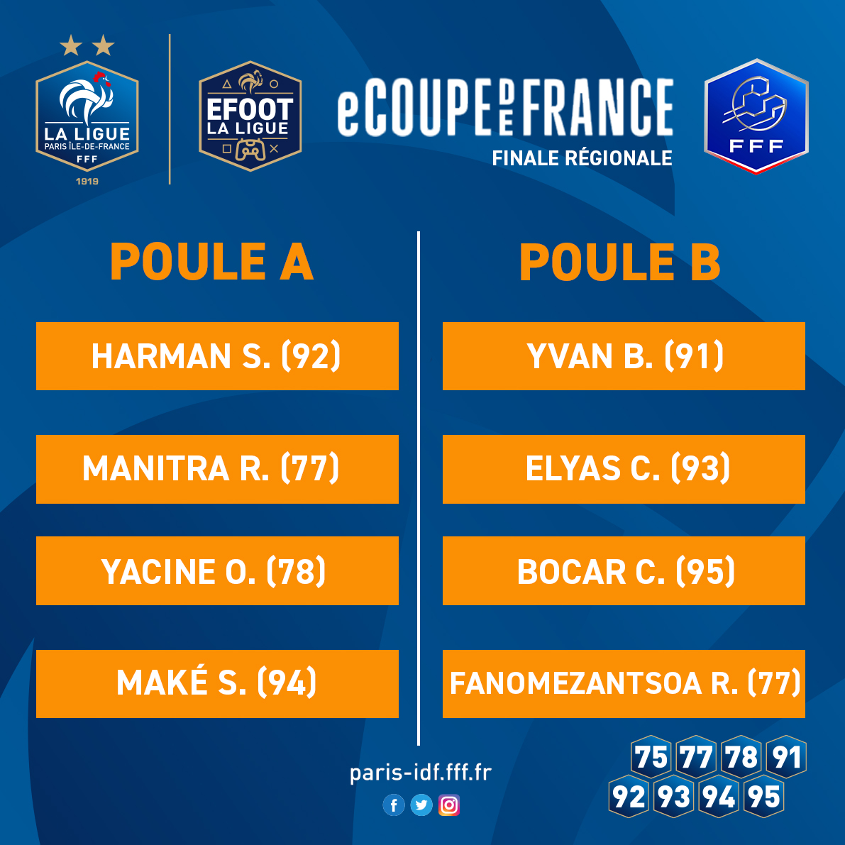 Les poules de la phase régionale de l’eCoupe de France 2026 :