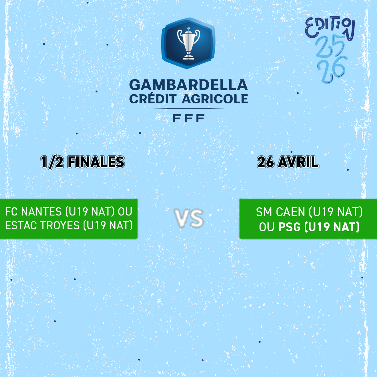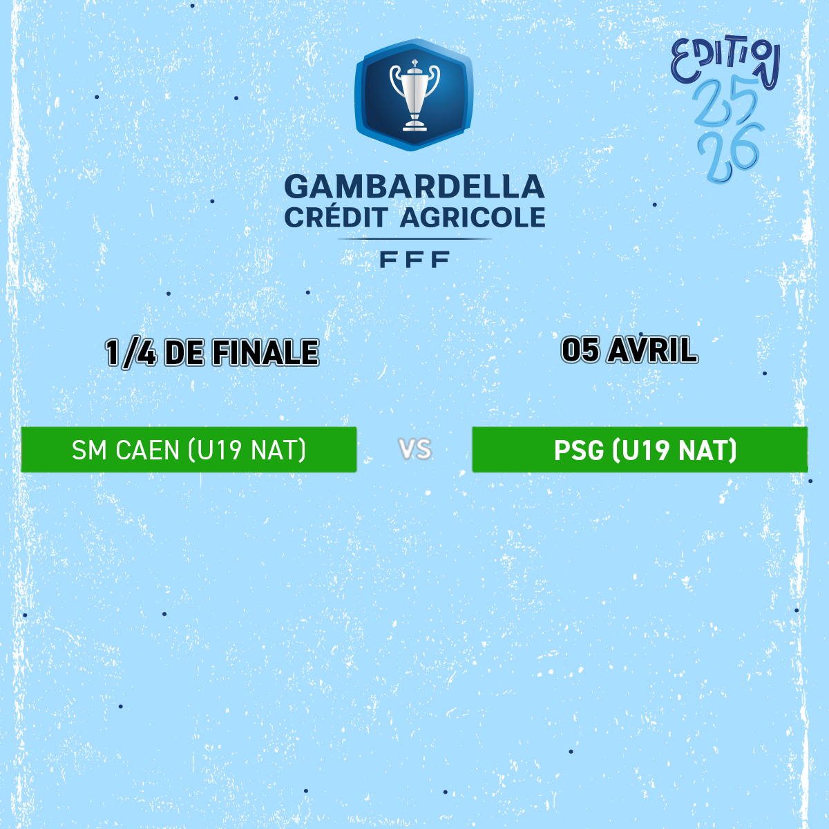 Bonne chance au club et aux joueurs du PSG pour leur quart de finale de la Coupe Gambardella !